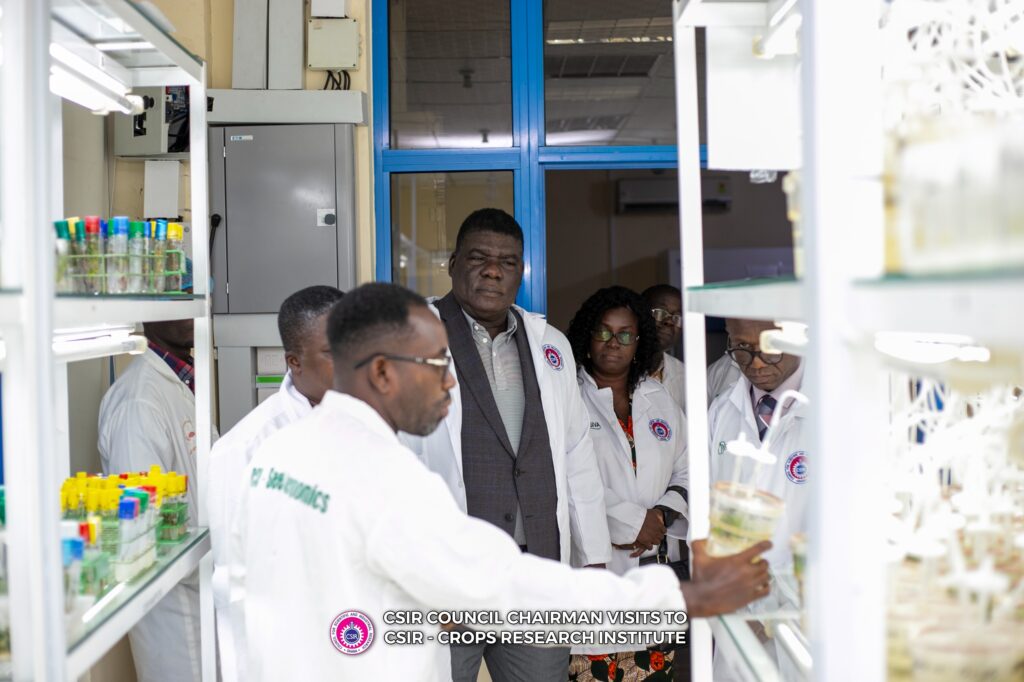 Welcomed by the Director of CSIR-CRI, Prof. Maxwell Darko Asante, and members of the Institute’s management team, the Chairman toured key research laboratories, exhibition stands and technology parks where scientists showcased innovations in crop improvement, plant protection, biotechnology, seed systems, mechanization, and climate-resilient agriculture. The tour offered him deeper insight into the scientific processes behind the improved crop varieties and technologies developed and disseminated by CSIR-CRI to farmers and agribusinesses nationwide.