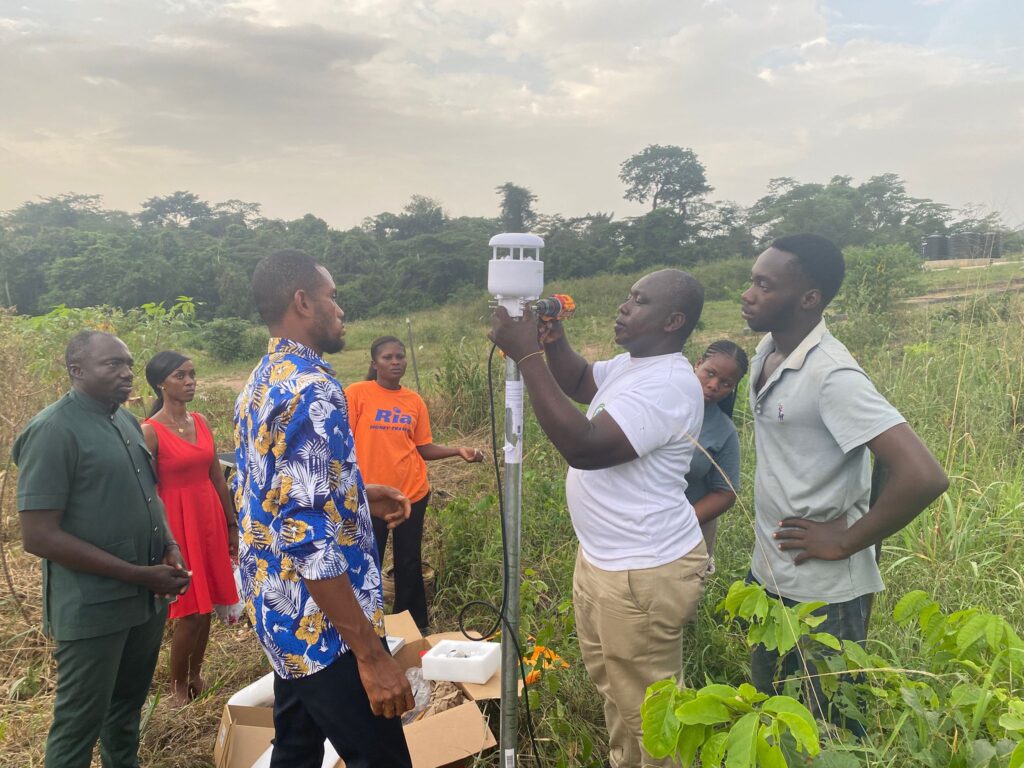 The installation was supported by a multidisciplinary team including Dr. Gordon Akon-Yamga (CSIR-STEPRI), Dr. Kwaku Onwona-Hwesofour Asante, Dr. Mrs. Zippora Appiah-Kubi, Mr. Kwame O. Simpe, Ms. Sarah Odame Afari and Reuben Nutefe Kuavedzi, alongside dedicated plant health technicians and field overseers responsible for data collection and system maintenance.