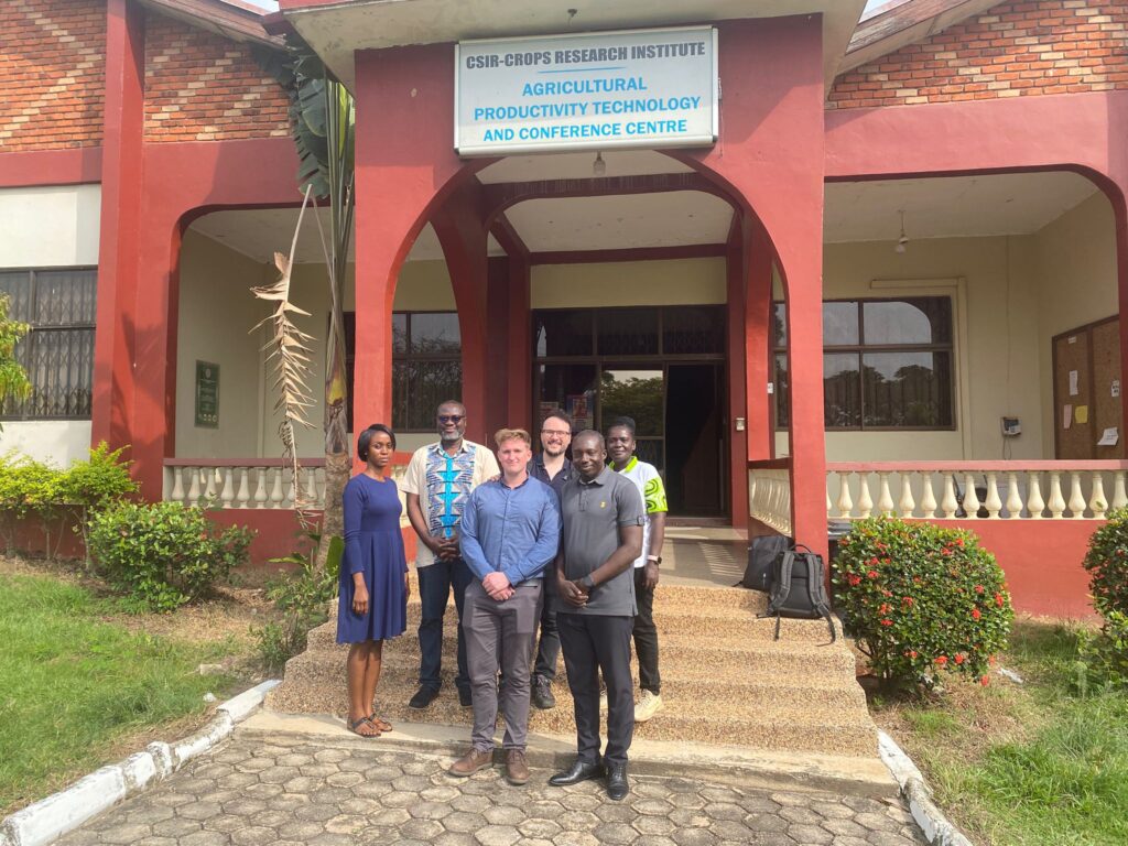 From 15 to 19 December 2025, two advanced weather stations were installed at the cassava section of the CSIR-Crops Research Institute within the MTP, as part of the UK–Brazil–Ghana Partnership for Cassava Disease Prevention. The installation was led by UK-based technology specialists Joshua Brett and Cevdet Bulut, working closely with Ghanaian scientists, engineers, and field teams.