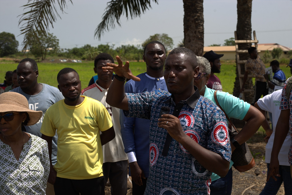 Following the indoor presentations, participants moved to the fields for a live demonstration visit, guided by the project team and lead farmers including Mr. Gabriel Appertey. The field visit transformed abstract data into vivid, tangible reality — participants could see firsthand the difference between managed and unmanaged plots, and the conditions that allow weed species to establish and spread.